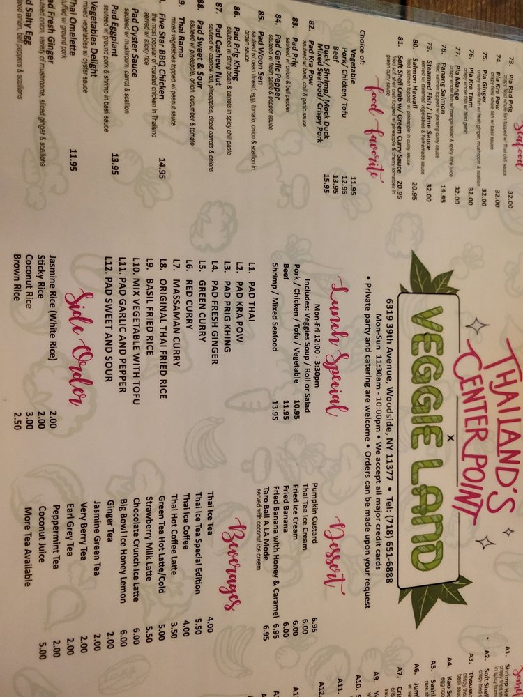Welcome to Thailand’s Center Point, a hidden gem nestled in Woodside, NY, where authentic Thai seafood comes alive. The menu offers an enticing array of flavors, starting with appetizers like the juicy Chicken Satay and crispy Veggie Curry Puffs, perfect for sharing. For those craving freshness, the Crispy Fried Fish Salad showcases vibrant mango amidst hearty greens, while the Sweet Sausage Salad bursts with tangy lime juice and fresh vegetables.